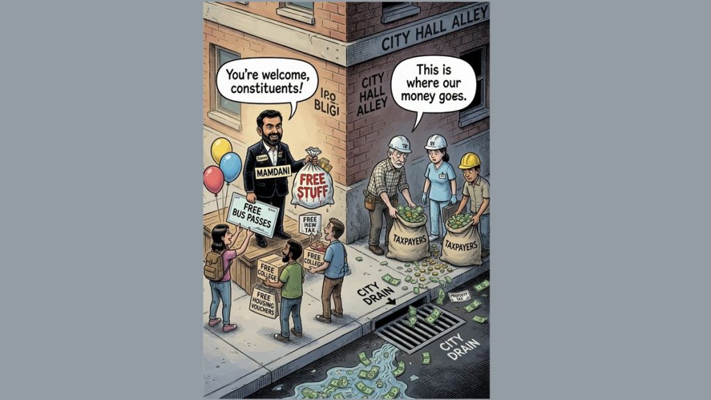 <p>As a typical left-wing socialist, New York Mayor Zohran Mamdani pushes policies that are founded on the misbelief that governance can provide a range of “free stuff” for the people. He defies the simple wisdom of Nobel Laureate economist Milton Friedman, who famously said “There is no such thing as a free lunch.” So, who pays for all that free stuff? The taxpayers, of course.</p>
