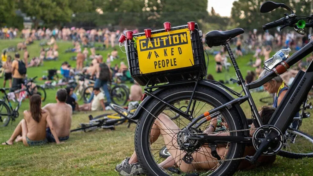 <p>With AI, electric bikes, and virtual reality, you&#8217;d think protests could evolve beyond this primitive caveman-level display. But noooo! Those on the port side cling to their naked traditions like a bad habit. Perhaps it is nostalgia for those groovy &#8217;60s, when bodies were firm and ideals were fresh. Now, those same protesters (or their offspring) are creaking along on two wheels, proving that time wounds all heels—and everything else.</p>