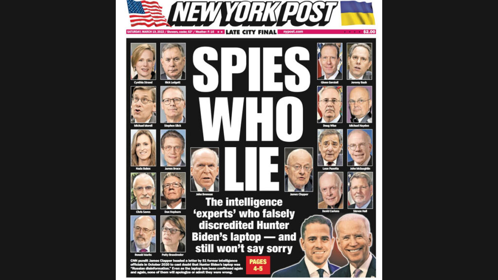 <p>Let us first consider what these folks did. Under the guidance of then Secretary of State Antony Blinken, this group of intel professionals committed an unforgivable action. They signed a public letter stating that the Hunter Biden laptop was a Russian hoax. That was a lie. They ignored the facts &#8230; the truth. They simply followed the propaganda script being spread by the White House. </p>